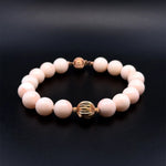 14K Yellow Gold 10mm Round Angel Skin Coral & Gold Bead Bracelet 8" | Regard Jewelry Austin Texas