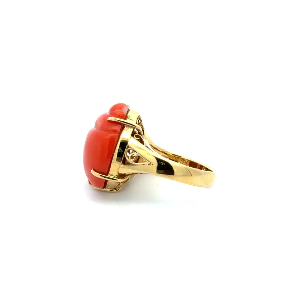 18K Yellow Gold Carved Coral Scarab Beetle Ring | Regard Jewelry Austin Texas