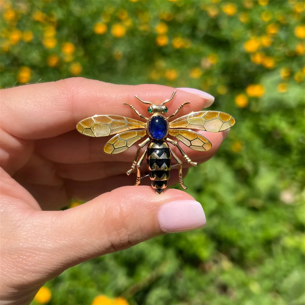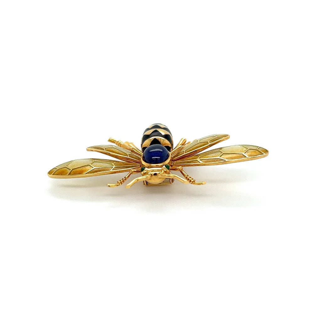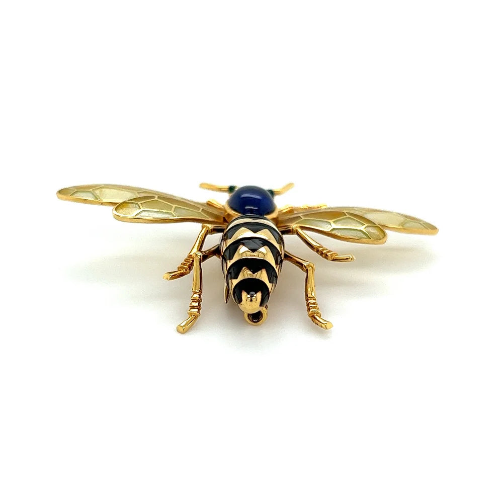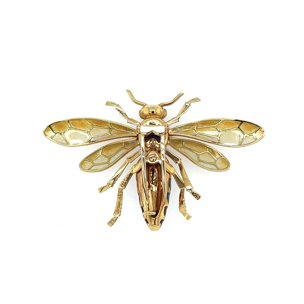 Cartier bee brooch with translucent plique-à-jour enamel wings and gemstone accents. Verified collectible, certified for craftsmanship and origin. Order now!