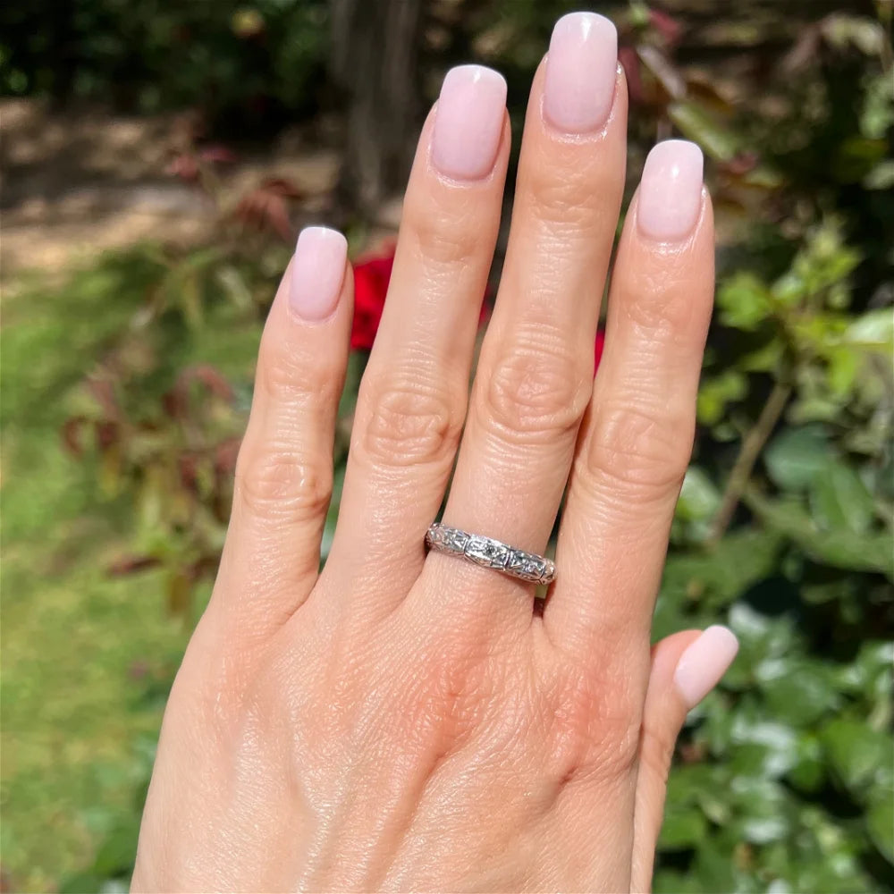 Platinum Art Deco Engraved .30tcw Diamond Eternity 4.3mm Dome Band Regard Jewelry Austin Texas
