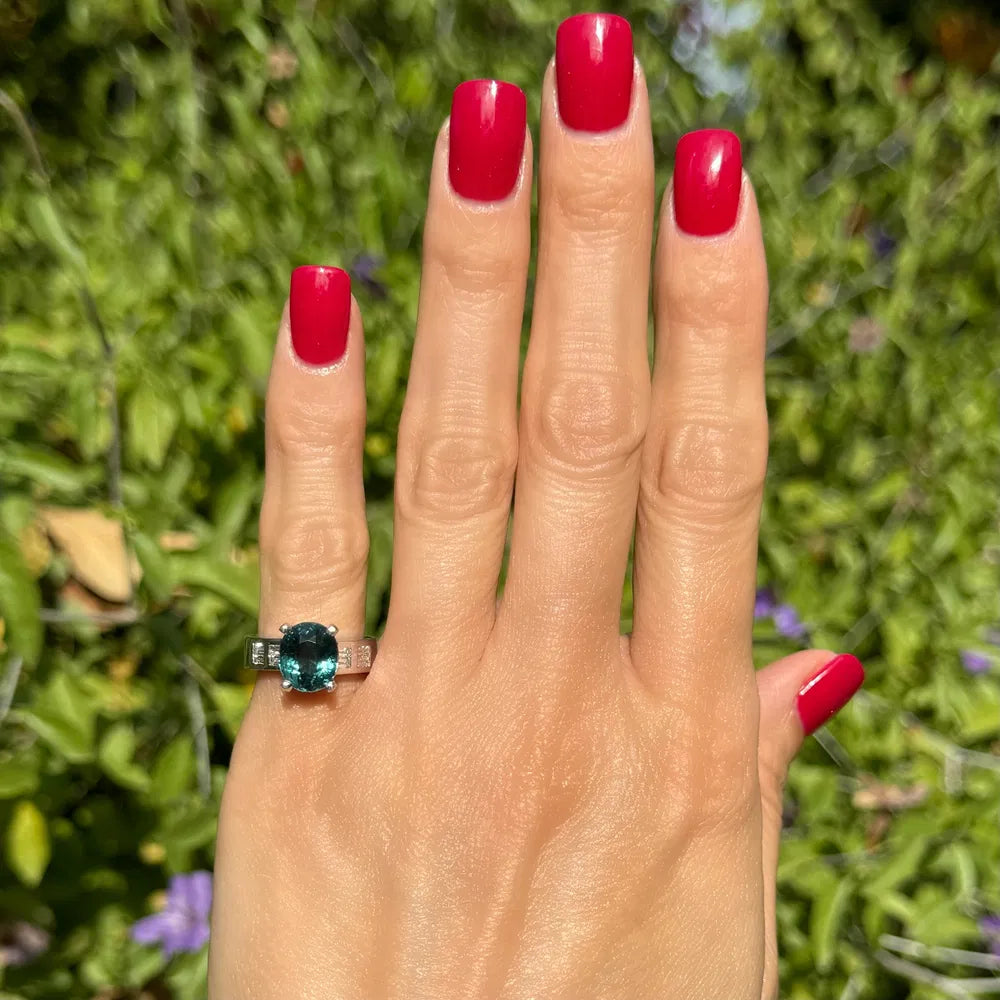 Platinum Tourmaline & Baguette Diamond Ring | Regard Jewelry Austin Texas