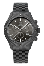 Modern aesthetics meet precision and accuracy. The elegant stainless steel case in gunmetal surrounds the color-coordinated dial, protected by scratch-resistant sapphire crystal. The gunmetal stainless steel link strap fits seamlessly into this color scheme. Inside, a Swiss movement ensures lasting precision. Equipped with hands and indices featuring Swiss Super-LumiNova®, a 20 ATM water-resistance rating, and a practical chronograph function, this watch combines functionality and style.