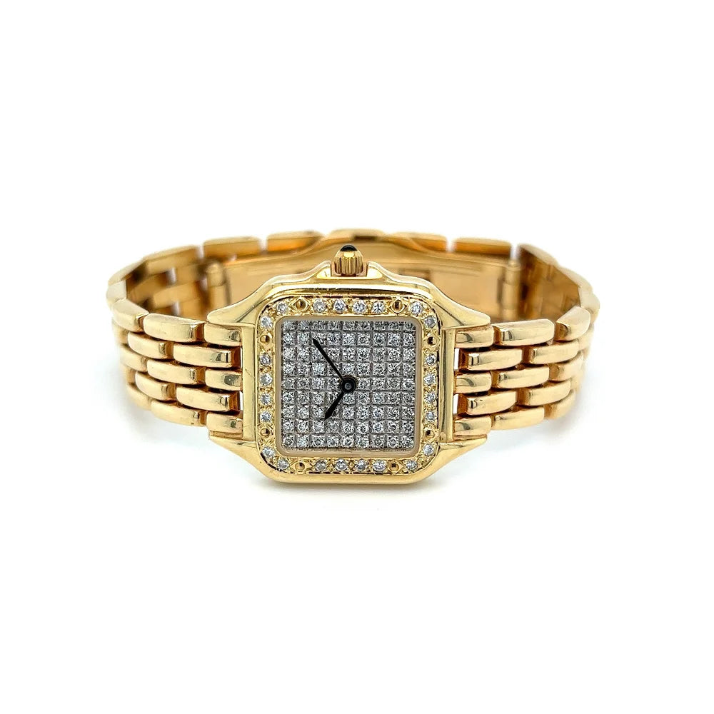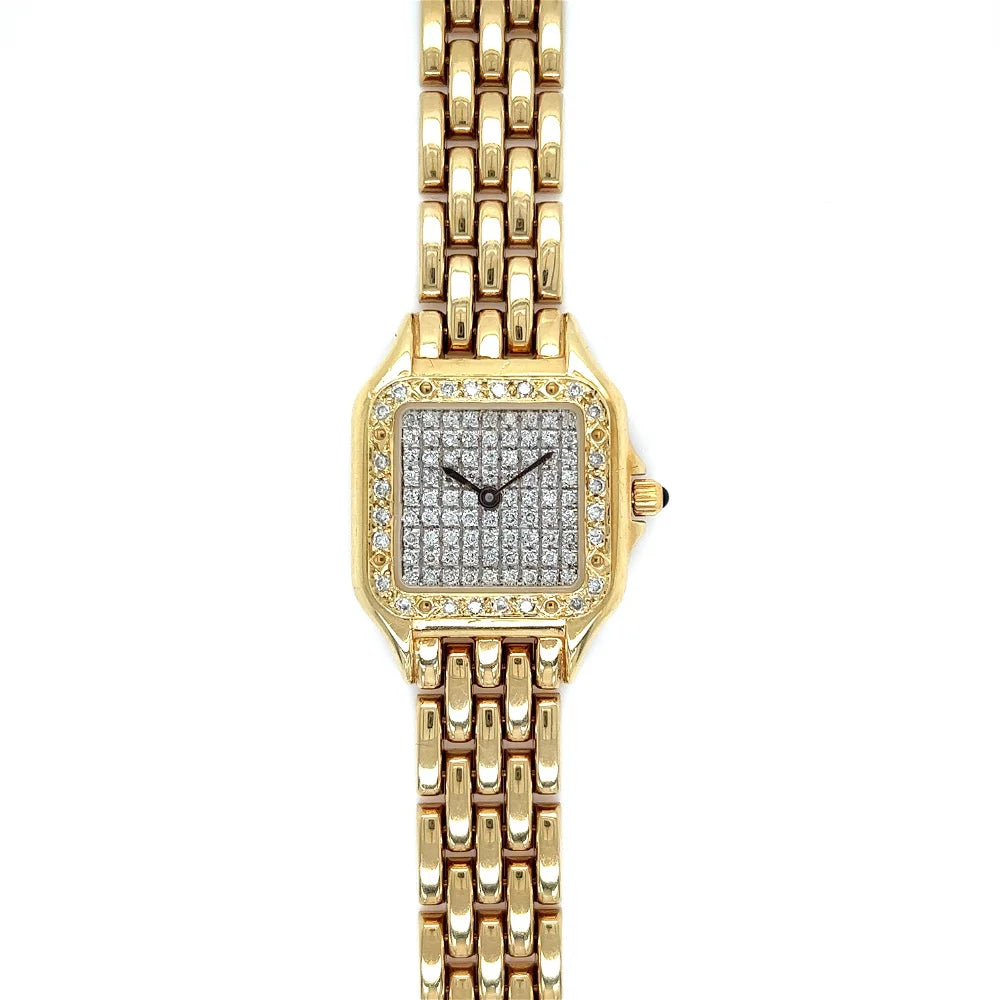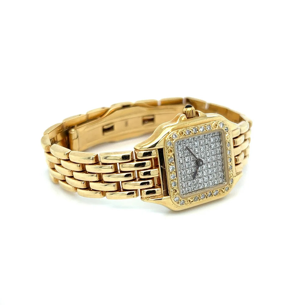 Cartier-inspired Italian luxury watch with 60tcw diamond-encrusted bezel and dial. Estate-sourced, inspected, and certified for authenticity. Get yours now!